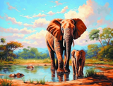 Алмазная вышивка «Большой слон с малышом у водопоя» 40x50 см