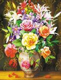 Алмазная вышивка «Букет лилий и роз в большой вазе» 40x50 см